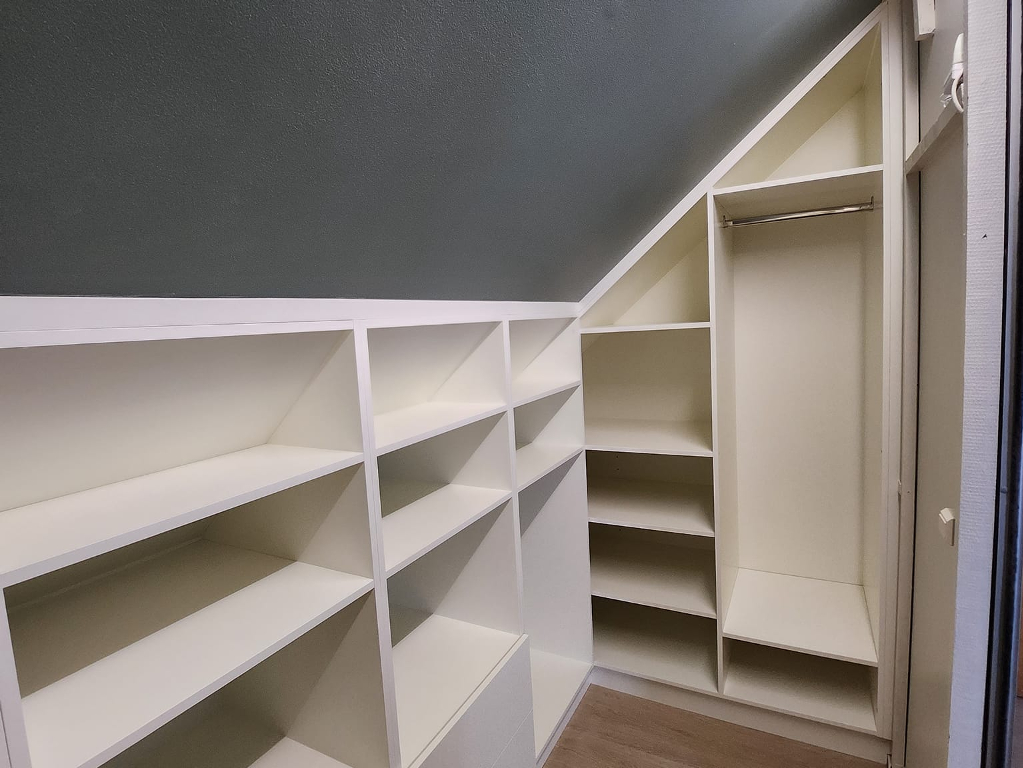 Nous proposons la réalisation d’espaces de rangement sur mesure, conçus pour s’intégrer parfaitement à votre intérieur. Nos dressings et placards sont pensés pour un design esthétique et une praticité optimale.